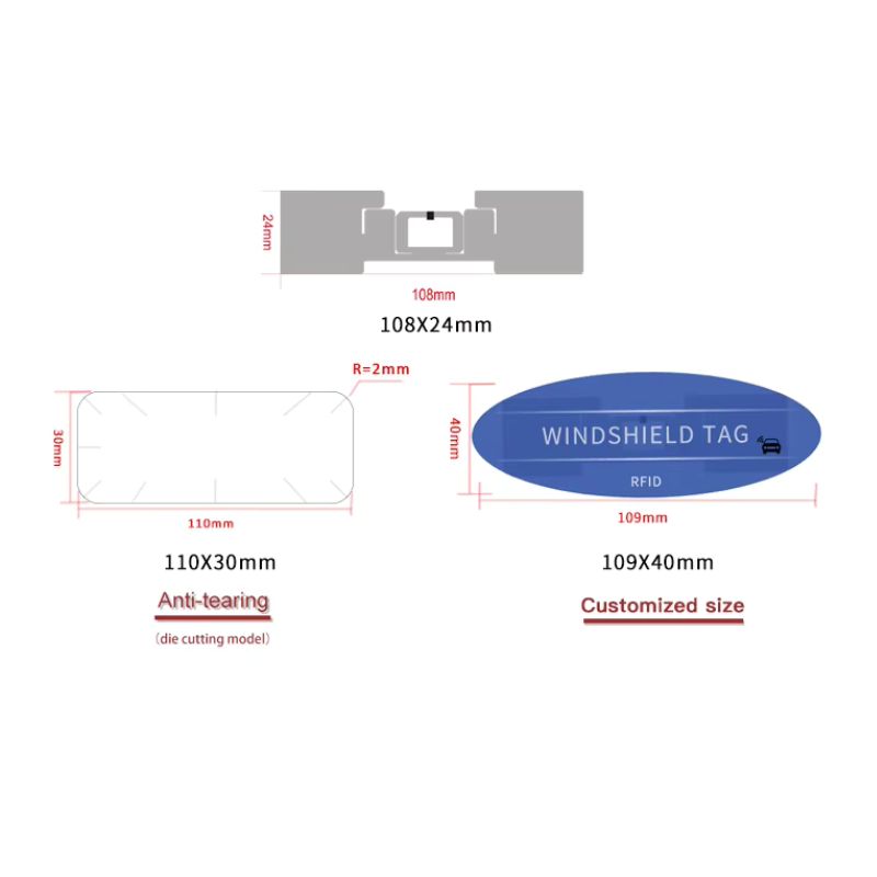 Esta etiqueta UHF para parabrisas está diseñada para ofrecer un rendimiento fiable de largo alcance en cualquier condición meteorológica. Su capacidad para ser leído con rapidez y precisión sin una línea de visión directa es una ventaja fundamental y uno de los más importantes principales diferencias entre RFID y código de barras lo que la convierte en la opción perfecta para una gestión eficaz y segura del aparcamiento.