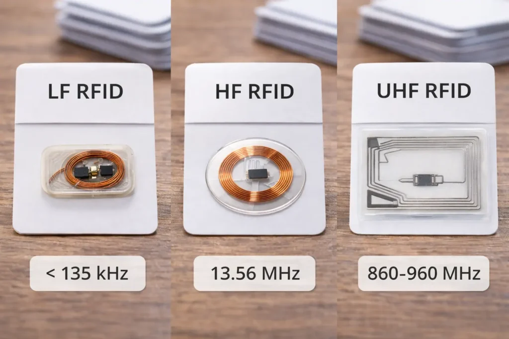 Passive RFID systems are classified by operating frequency because frequency determines the electromagnetic coupling method, antenna structure, signal behavior, and typical use environment. The three primary categories in passive RFID are low frequency (LF), high frequency (HF), and ultra-high frequency (UHF).